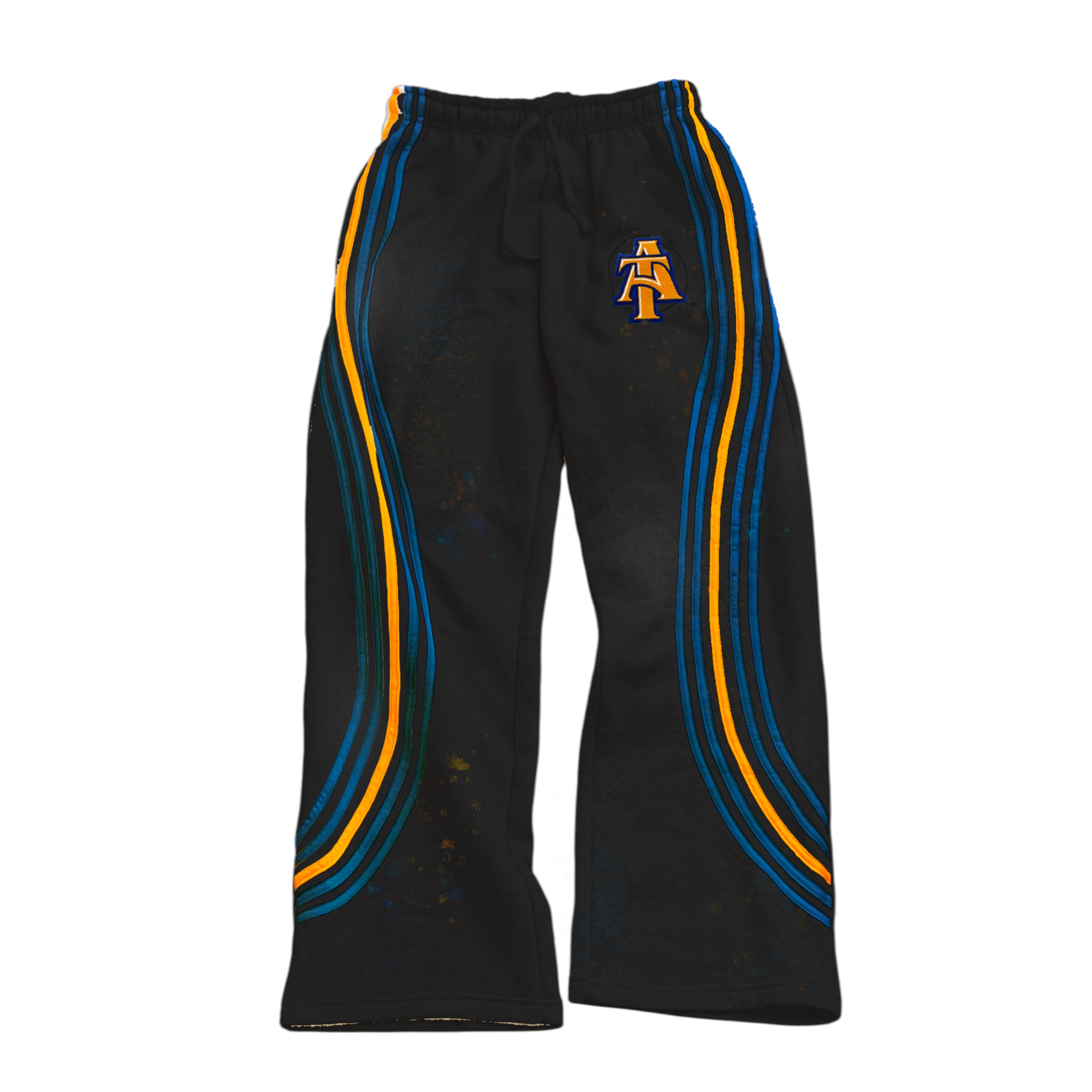Classic black French terry sweatpants accented with Aggie blue and gold detailing, finished with the official NCAT logo at the hip. Designed as the perfect match to the NCAT Lifestyle Jacket.