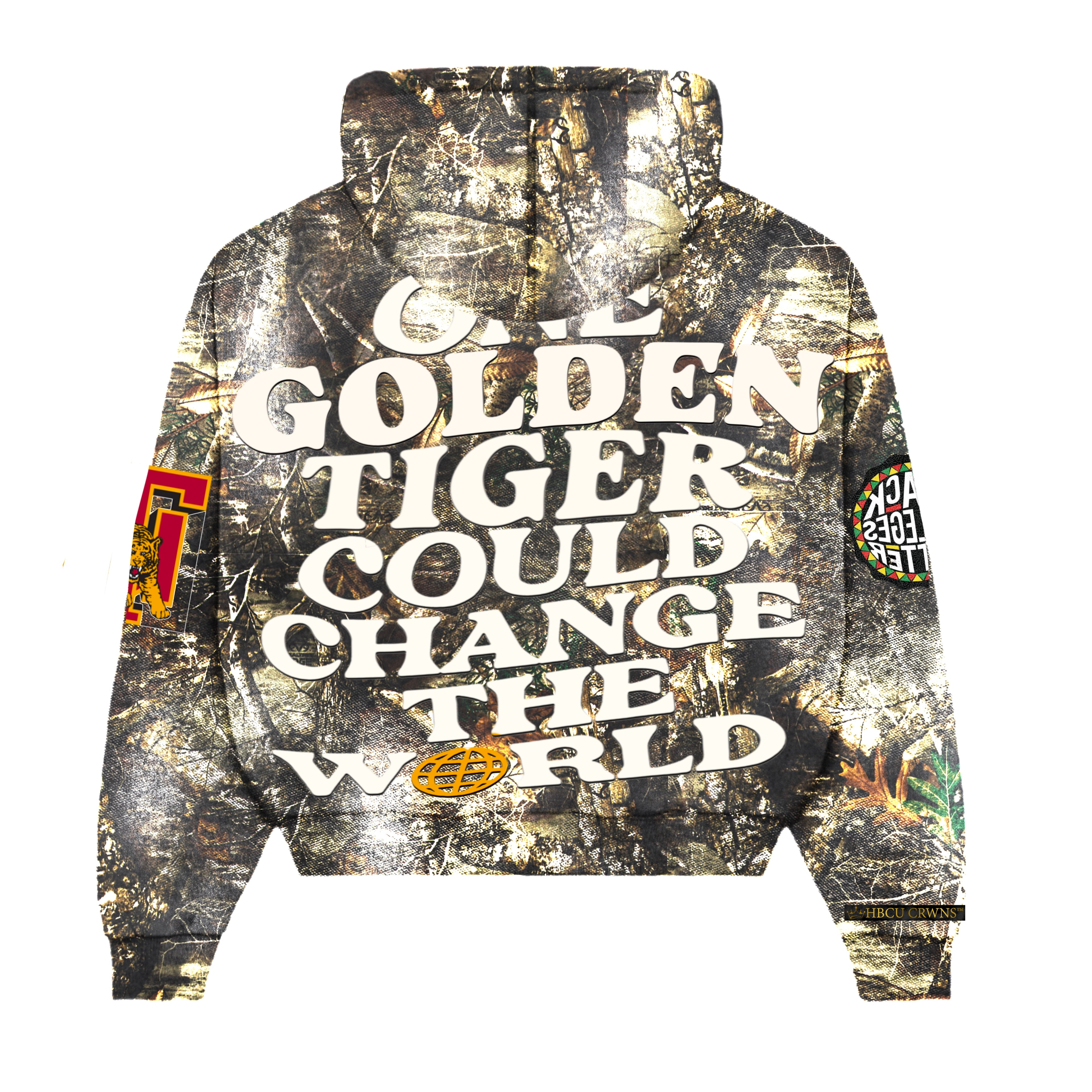 Iconic Crimson and Old Gold with distressed appliqué and silk hood lining. Back reads: “The Pride of the Swift Growing South.” Designed for the yard, Cleve L. Abbott Stadium game days, and Tuskegee Homecoming nights.