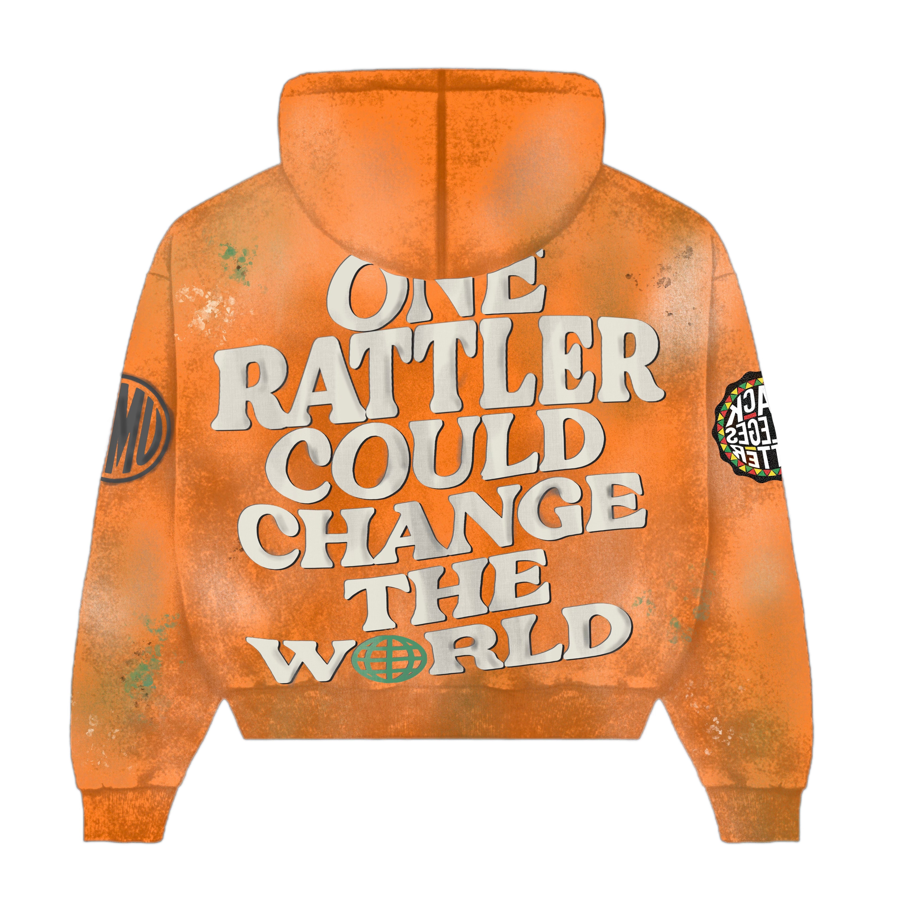 A powerful 3D puff back design reading: “One Rattler Could Change the World”—a declaration of Rattler Pride and global influence.