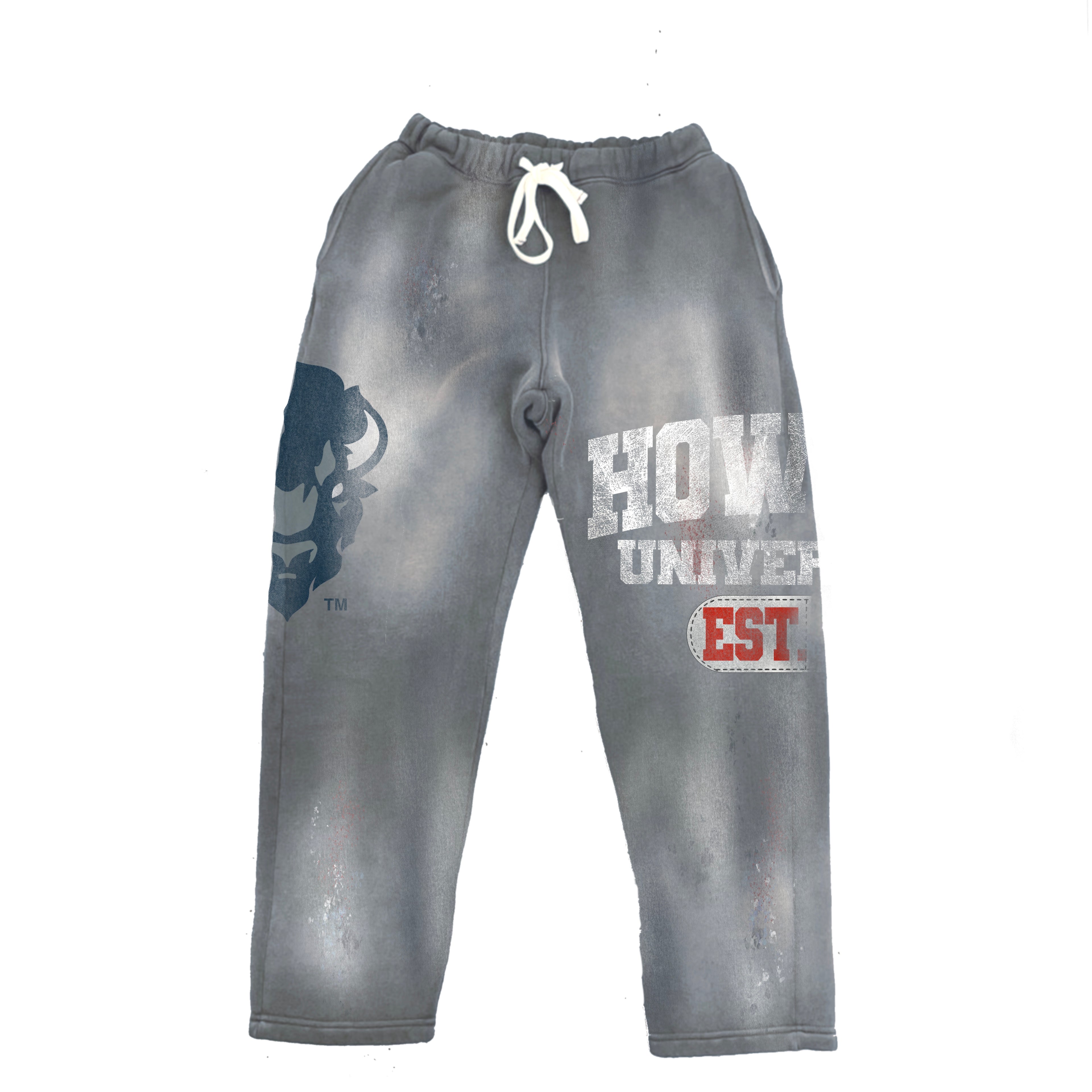 Classic Navy and Red with distressed appliqué detailing and bold Bison logo print on the right leg. Designed for the Yard, Greene Stadium Saturdays, and Howard Homecoming nights.