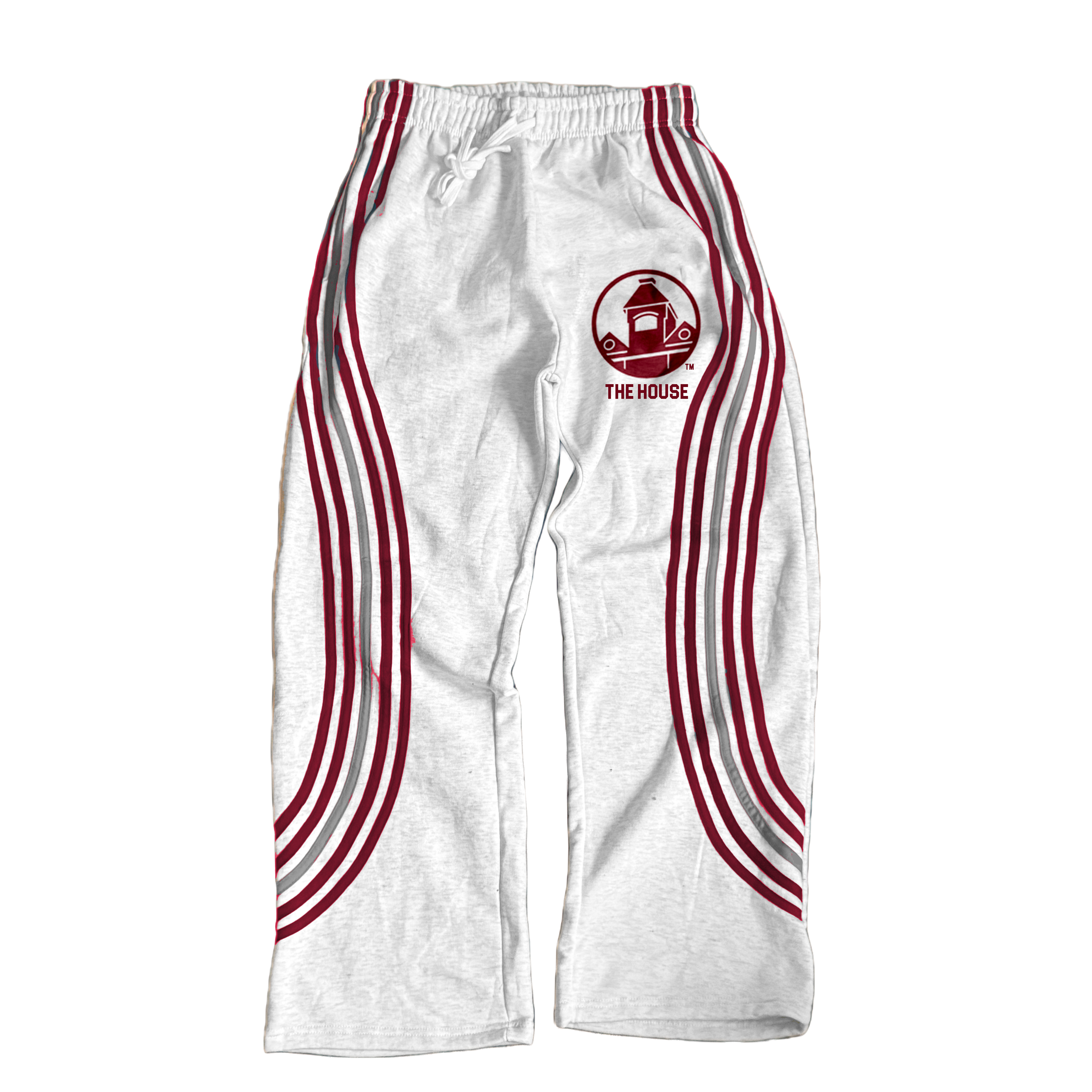 White sweatpants with bold Maroon and silver side stripingand Maroon Tiger detailing. Designed for the Yard, B.T. Harvey Stadium Saturdays, and Morehouse Homecoming nights.