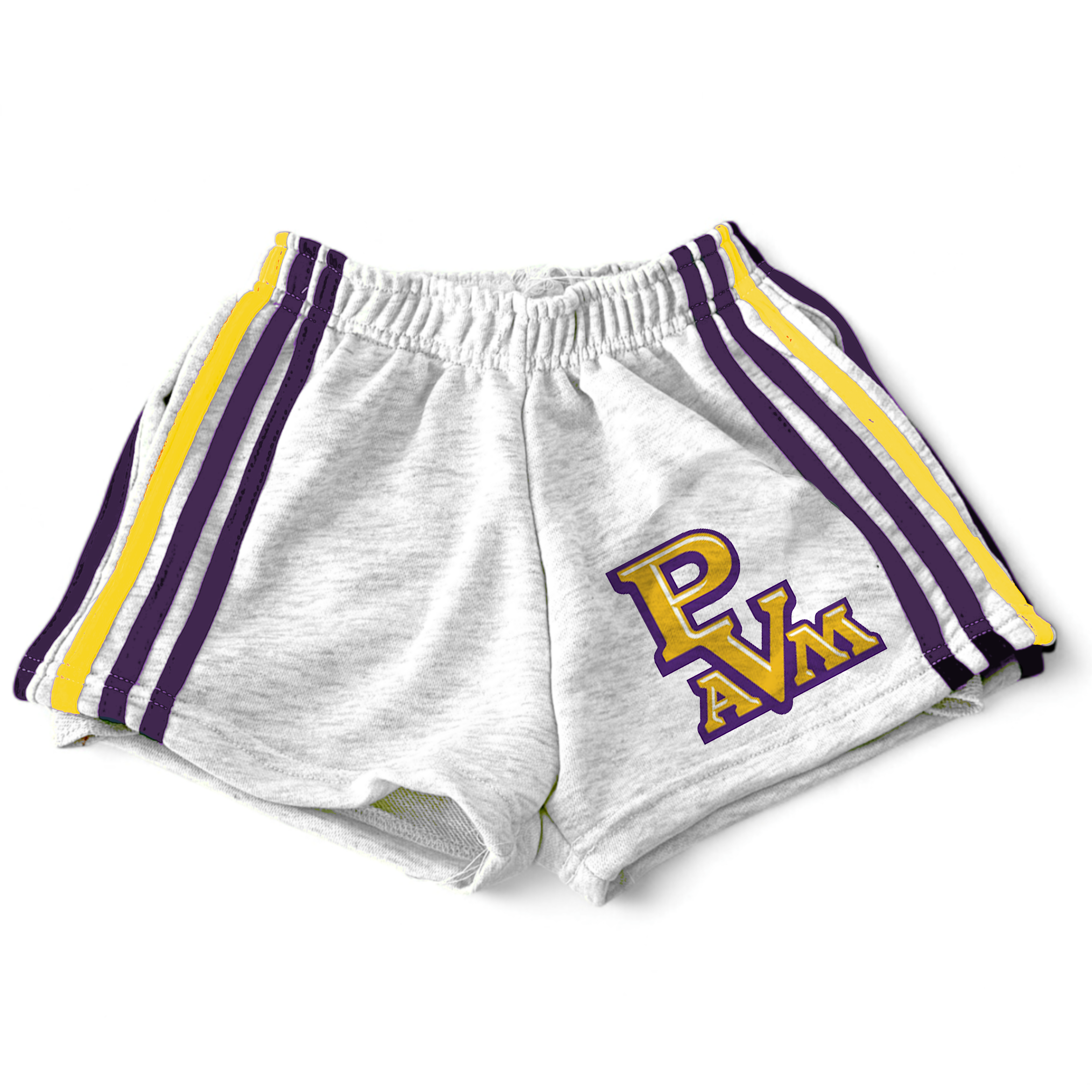 White cropped shorts with bold Gold and White side striping plus distressed appliqué lettering and Panther detailing. Designed for the Hill, Panther Stadium Saturdays, and PVAMU Homecoming week.